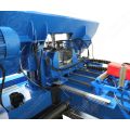 Станок GNS4240 - эффективное решение для высокопроизводительного пиления под углом 90° профилей, сплошных заготовок из конструкционных и высоколегированных сталей, титановых, никелевых, цветных и других сплавов. Область применения: предприятия различных отраслей с крупносерийным выпуском продукции. Движение пильной рамы и соответственно подача ленточного полотна осуществляется гидравлическим цилиндром. Скорость вращения полотна настраивается в широком диапазоне (27, 45, 69 м/мин), что позволяет максимально эффективно использовать оборудование в соответствии с профилем и обрабатываемым материалом. Резание на станке GNS4240 может выполняться как в ручном, так и автоматическом режиме. В последнем случае система ЧПУ полностью контролирует весь цикл обработки: фиксация заготовки гидравлическими тисками и ее подача / запуск и остановка полотна / изменение положения пильной рамы. Управление осуществляется через специальную панель, на которой размещены сенсорный дисплей, регулировка скорости опускания пилы и кнопка аварийной остановки.