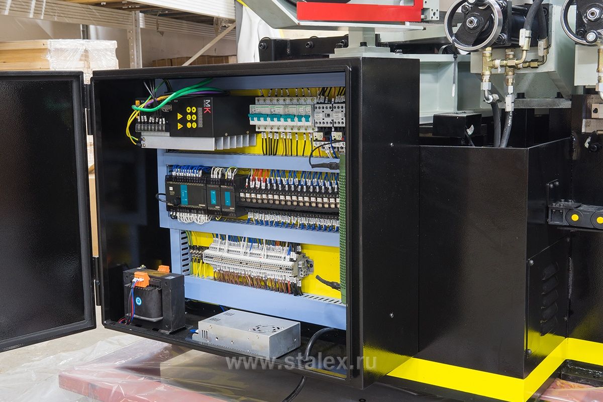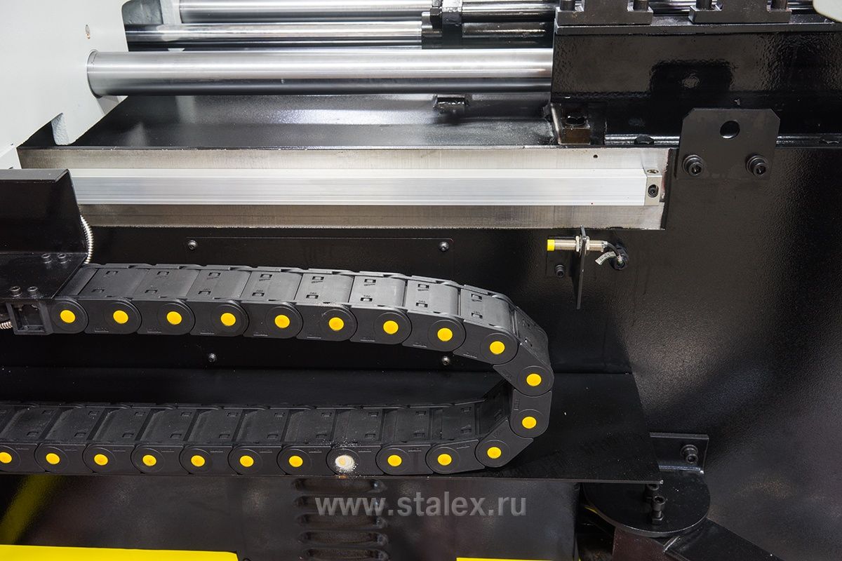 - Длина подачи заготовки контролируется автоматически c ЧПУ (СNC), движение происходит по линейным направляющим гарантирующим точность подачи.