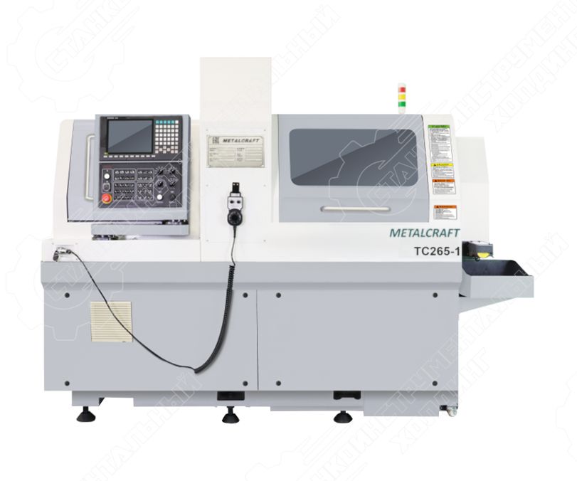 Высокопроизводительный 5-ти осевой токарный автомат с ЧПУ швейцарского типа (Swiss-Type) модели TC265-1 является высокопроизводительным станком для обработки прутков диаметром от 5 до 26 мм из различных материалов (от цветных сплавов до труднообрабатываемых сталей). Станок оснащенные подвижной шпиндельной бабкой, цанговым патроном, вращающейся направляющей втулкой, линейным инструментальным суппортом, приводными инструментальными блоками, а также автоматическим податчиком прутка, позволяют производить одновременную полноценную обработку в обоих шпинделях.