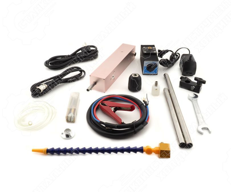 Экстрактор электроискровой (электроэрозионный) предназначен для извлечения сломанных метчиков, сверл, шпилек и других застрявших металлических элементов из отверстий. В модели MR-1300B качестве токопроводящего инструмента используется латунный электрод диаметром от Ø0.8 до Ø10.0 мм. Рабочая головка DK8 экстрактора вращается на 360° и оснащена регулировкой глубины обработки (максимум 70 мм), что позволяет производить работы без демонтажа детали / заготовки.