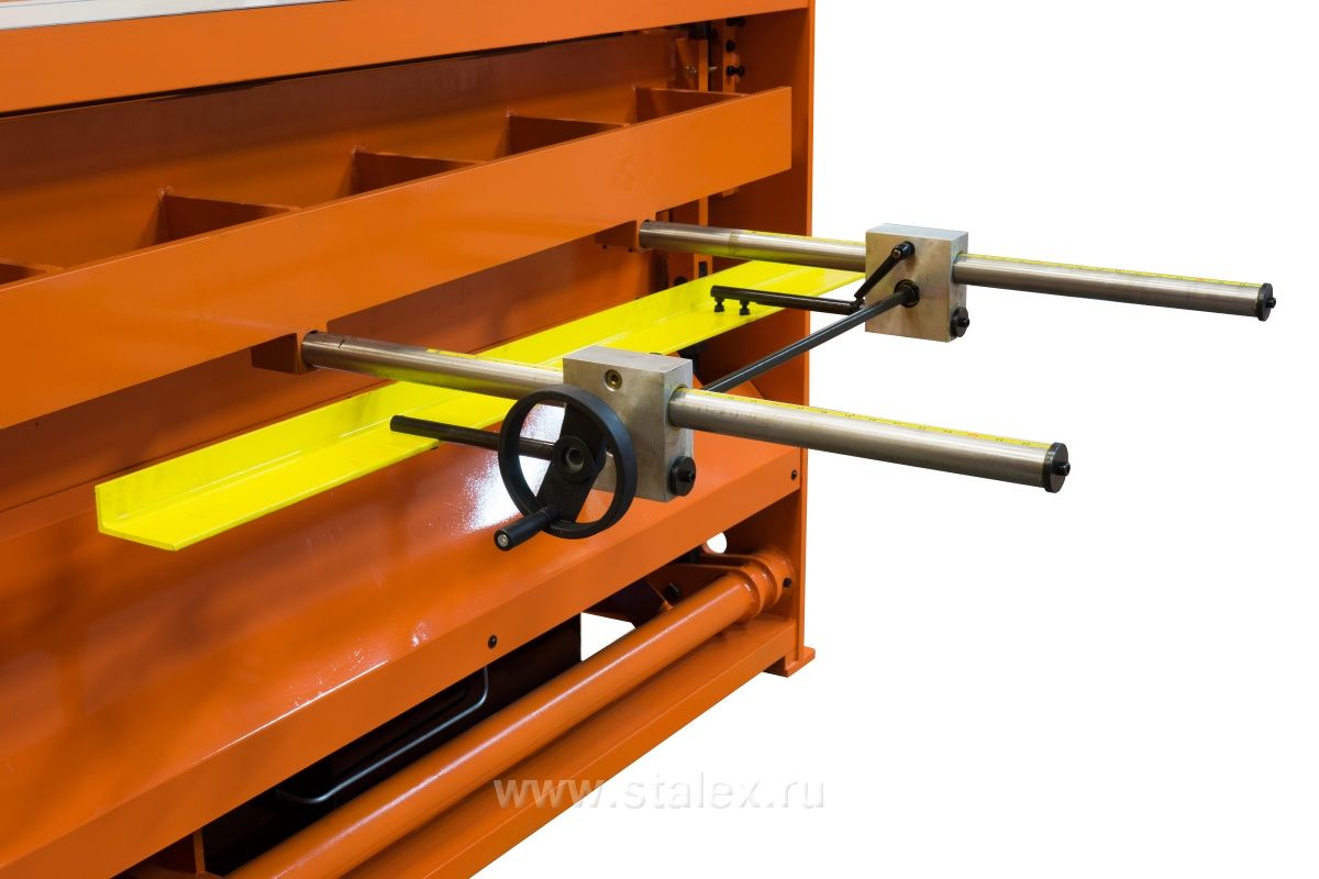Основное преимущество гидравлических станков в плавности работы и запуска. Любые вибрации при эксплуатации исключены за счет полностью сварной конструкции из высокопрочной стали. В стандартный комплект входит ручной калибровочный задний упор.