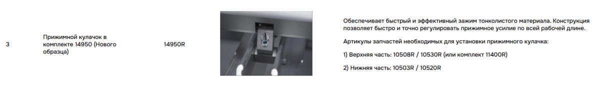 - Уникальной особенностью гибочных станков являются подвижные прижимные кулачки нового образца арт.14950R — благодаря системе прижимных кулачков станки имеют чёткую фиксацию листа, вне зависимости от срока службы или состояния станка. На протяжении всего цикла жизни каждого станка, работая с тонколистовым металлом даже на максимальных толщинах — разработанная конструкция прижимных кулачков позволяет всегда чётко фиксировать лист.