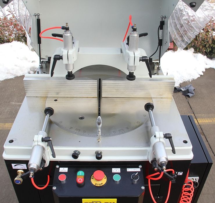 Полуавтоматическая дисковая пила QCS-400A с пневматическим зажимом заготовки, представляет собой станок, который может использоваться в различных сферах производства, для резки профильных заготовок из алюминия и цветных металлов. Перемещение режущего диска осуществляется с помощью пневматического привода снизу-вверх.