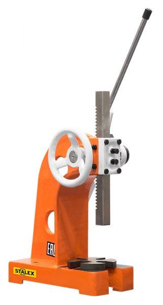 Используется в ремонтных и производственных целях. Благодаря высококачественным зубьям, пресс позволяет впрессовывать подшипники, втулки и различные другие детали небольшой высоты. Усиленная Т-образная конструкция из плотного металла не деформируется в процессе работы. Усилие с рукоятки на шток передается с помощью зубчатой шестерни. Модель оснащена маховиком вращения, отвечающего за быстрое вертикальное перемещение штока. С другой стороны станка размещён рычаг с храповым механизмом, который преобразует вращательное движение в однонаправленное прерывистое движение – для чёткой и надежной запрессовкивыпрессовки деталей и узлов.