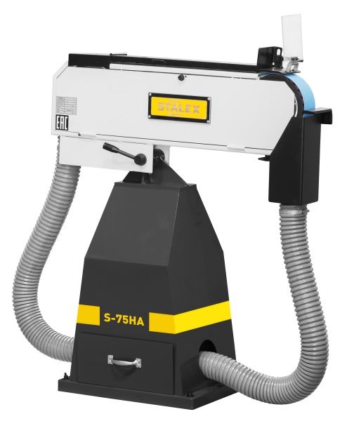 Ленточно-шлифовальный станок Stalex S-75HA используется для торцовки, заточки, зачистки, шлифовки и полировки изделий путём обработки плоскостей и сопряжённых плоских поверхностей «бесконечными» (сомкнутыми в кольцо) лентами. Станок популярен и широко применяется в цехах и мастерских, предназначен для быстрой подгонки элементов при сборке, обработке сварных швов и прочее. Ленточный шлифовальный станок находит применение в сфере метало и деревообработке. Станок поставляется с системой сбора абразивной пыли (съёмный модуль + подводящие патрубки). Комплектуется трёхфазным двигателем мощностью 4 кВт. Рама станка имеет возможность менять угол установки, комплектуется защитным экран для безопасной работы.