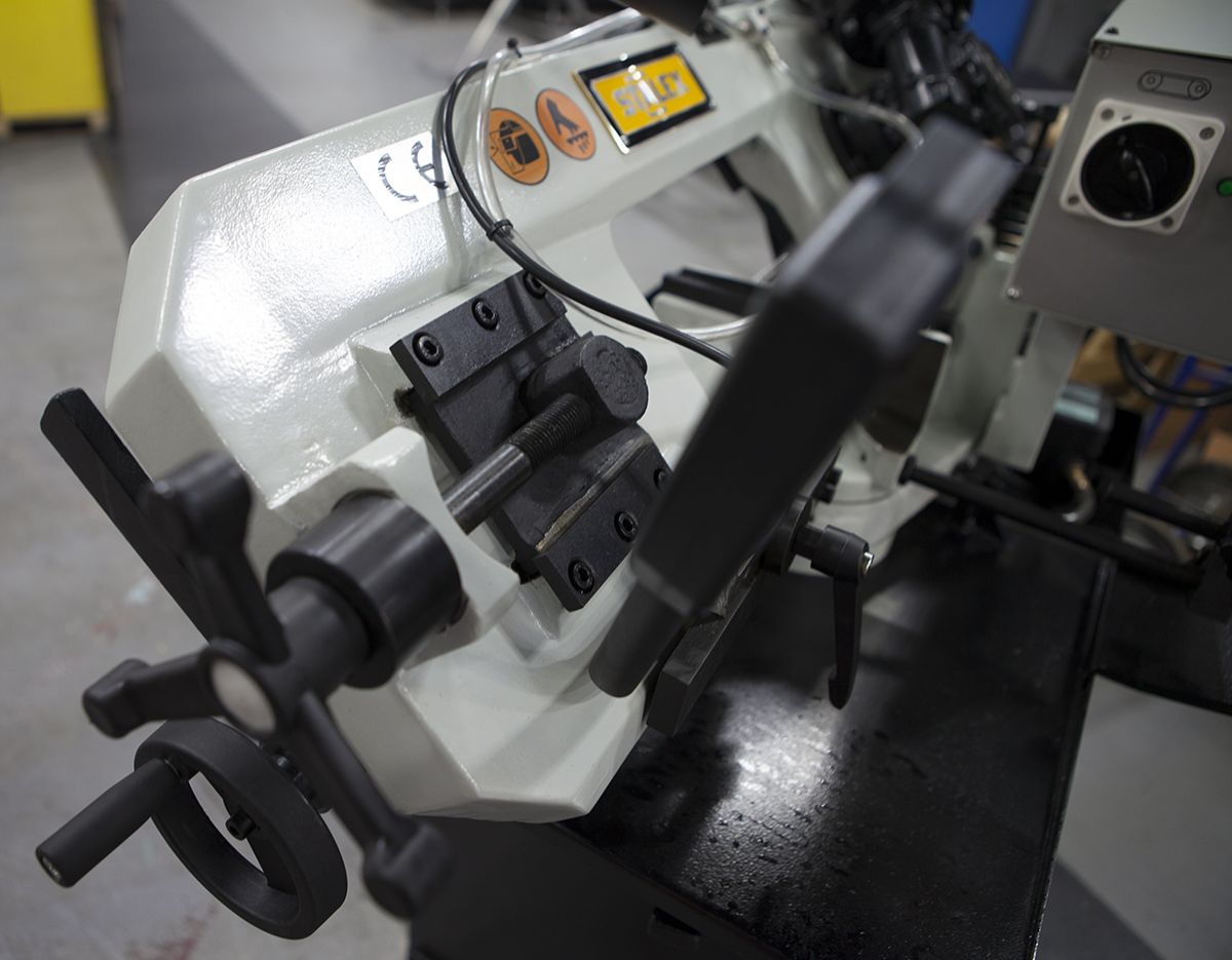 Тиски с системой быстрого отвода ускоряют процесс смены заготовки (ускоренный отвод подвижной губки происходит без вращения маховика). Зажим заготовки осуществляется тисками вручную, подача заготовки - также вручную. Наличие система СОЖ в стандартной комплектации – позволяет добиться высокой производительности.