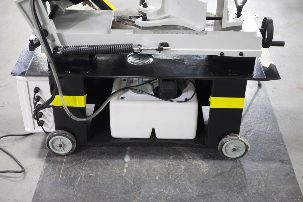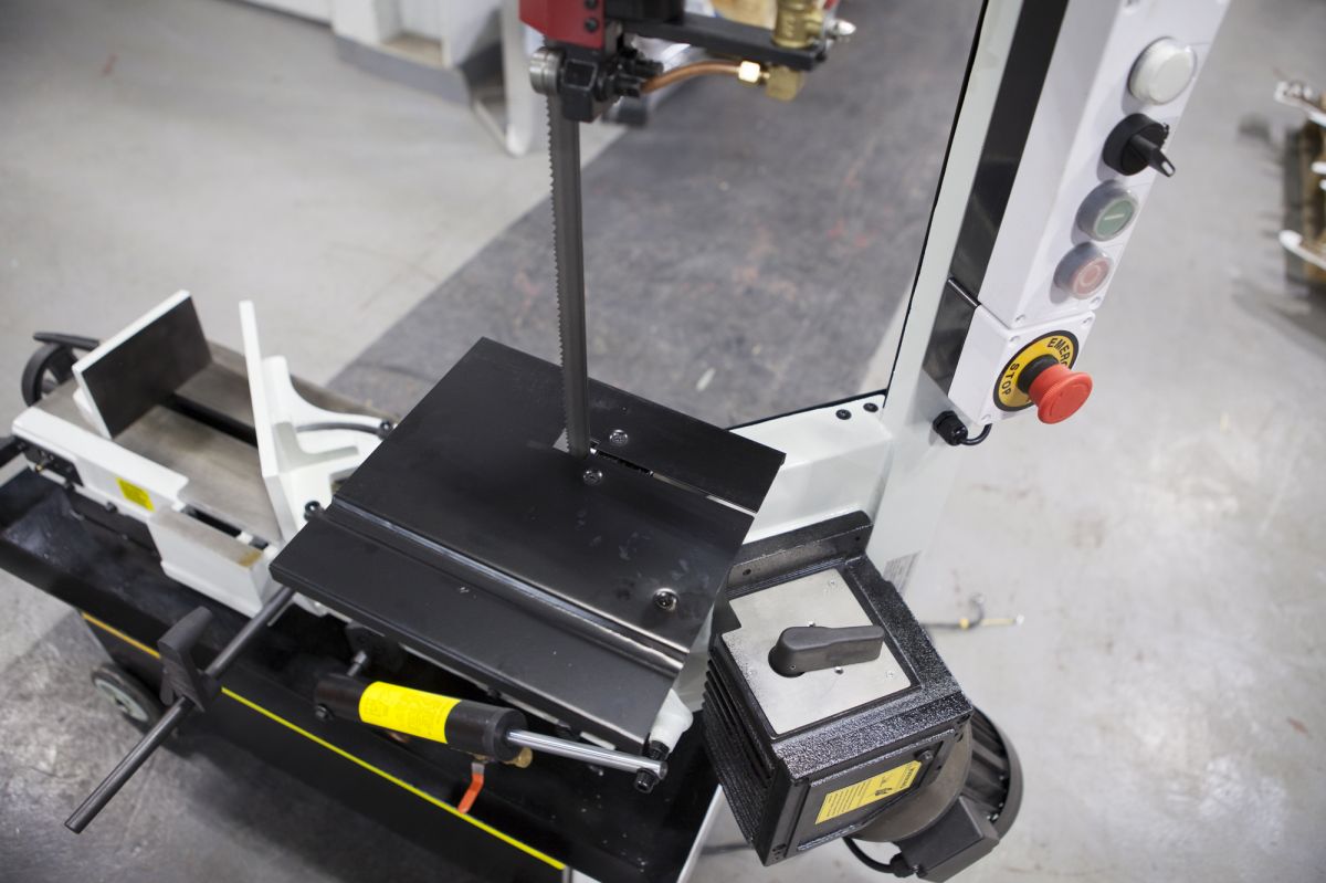 Стандартная модель мобильного ленточнопильного станка, разработана для резки черных металлов и других материалов с целиковым, полым или профильным сечением. Станок позволяет делать распилы заготовок диаметром до 180 мм в полуавтоматическом режиме с ручным возвратом пильной рамы в первоначальное положение. Пила опускается под собственным весом, станок оборудован дросселируемым гидравлическим цилиндрами подач, который позволяет автоматически подстраивать скорость опускания пильной рамы в зависимости от профиля заготовки, что обеспечивает оптимальные режимы распила. Станкам не требуется подключение к источнику сжатого воздуха.