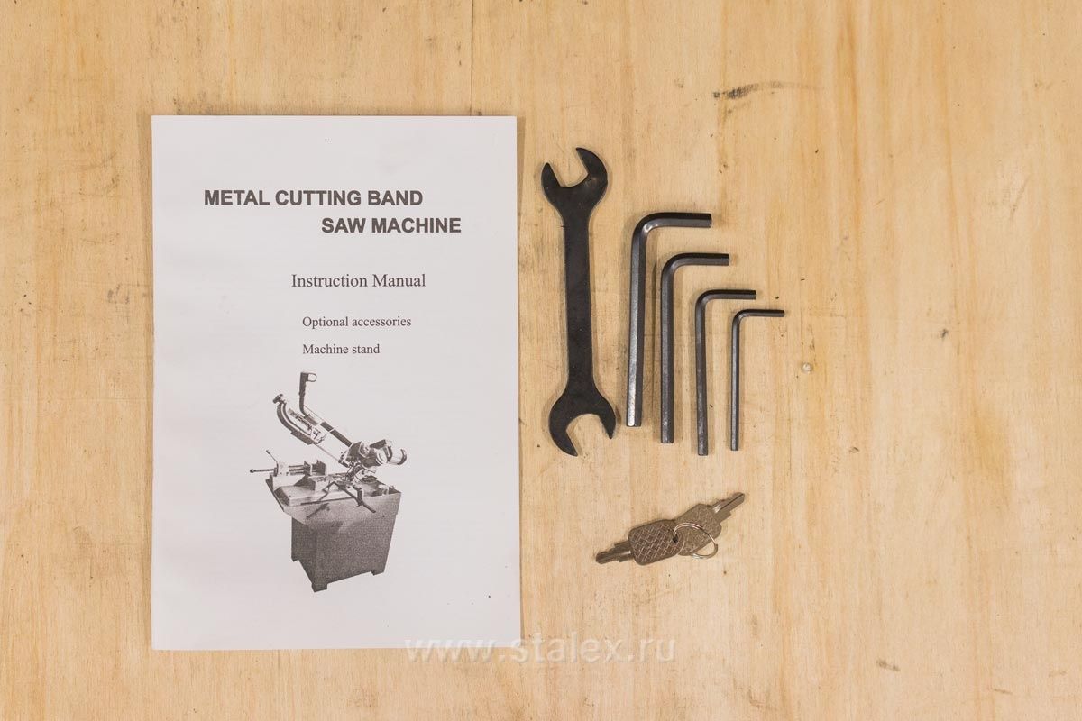 Режущий инструмент – бесконечная сварная ленточная пила. Полотно натягивается с помощью натяжного шкива. Натяжной шкив приводится в движение приводным шкивом, который в свою очередь, приводится через редуктор.