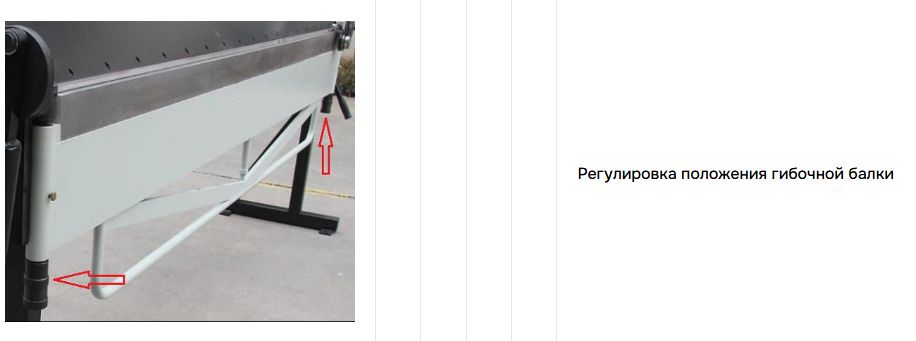 Регулировка положения гибочной балки: +