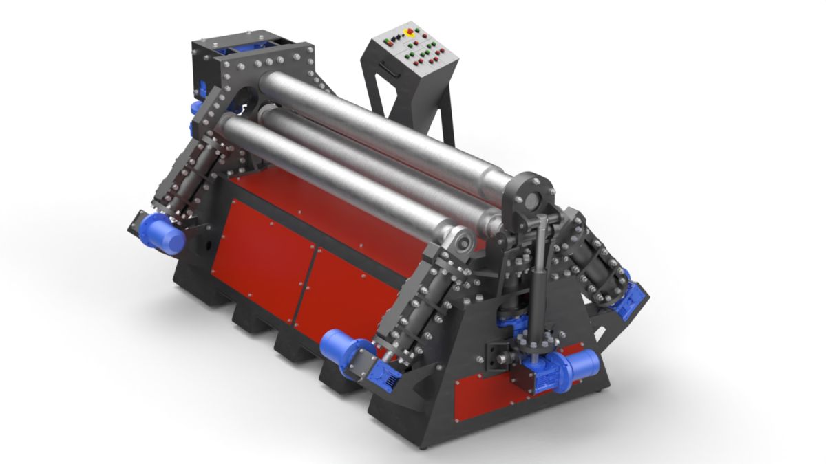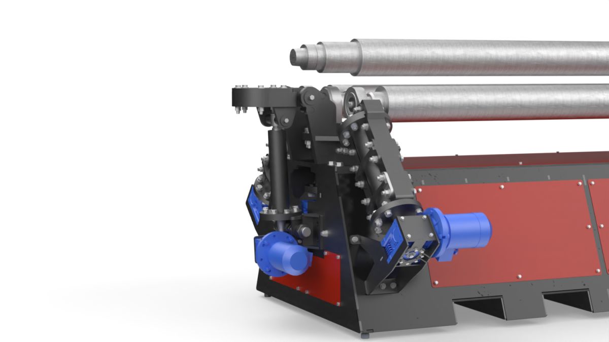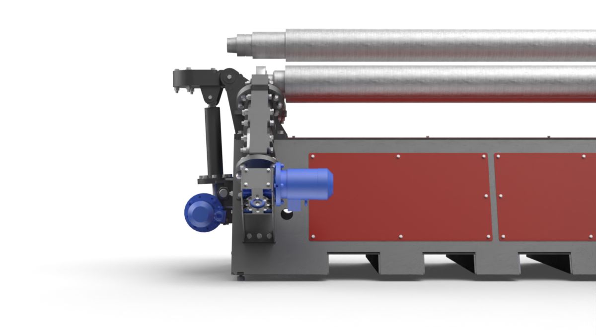 •Для более точного проката обечайки и возможности проката конусной заготовки предусмотрена асинхронная регулировка положения боковых и нижний валов