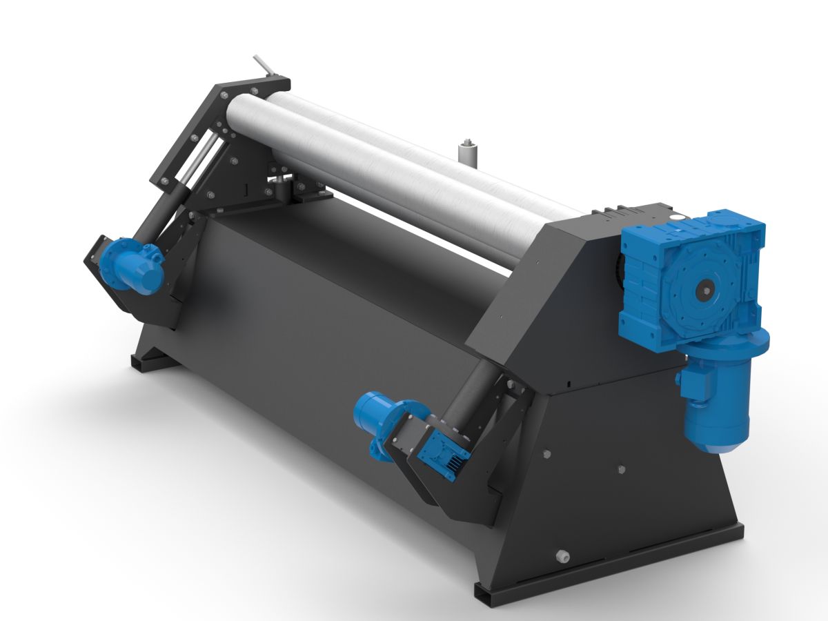 Асимметричные вальцовочные станки имеют особое расположение валов, при котором боковой вал двигается по диагонали по отношению к верхнему и нижнему валу. Такая схема позволяет исключить прямые участки на прокатываемой обечайке. Боковым валом задаётся нужный радиус прокатываемой детали.