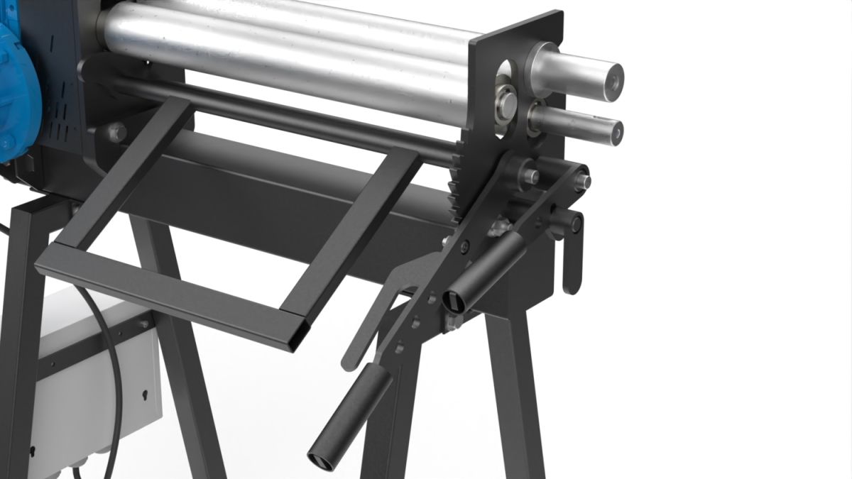 эксцентриковая система подъема нижнего и бокового вала; боковым валом задается нужный радиус прокатываемой обечайки,