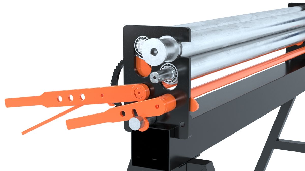 Зубчатый привод предотвращает проскальзывание металла между валами. Асимметрично расположенные валы обеспечивают ровный подгиб заготовок, исключая возникновение заломов и прямых участков (эффект домика).