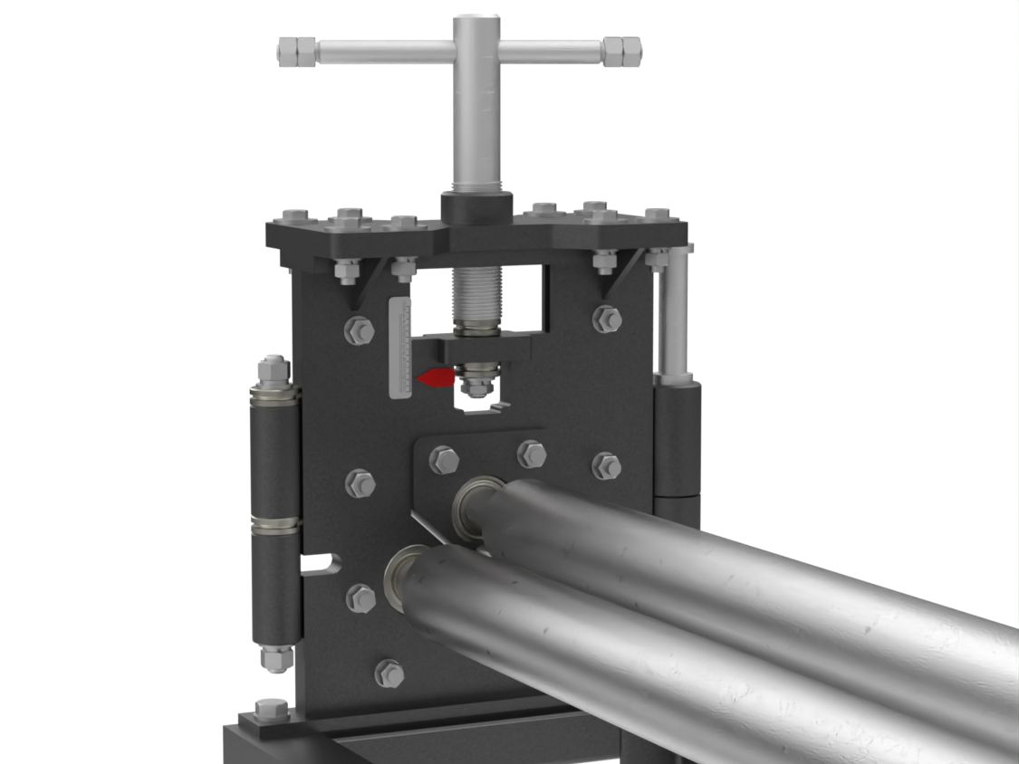 • Симметричное расположение валов с правильно подобранным межосевым расстоянием позволяет прокатывать обечайку с минимальным прямым участком