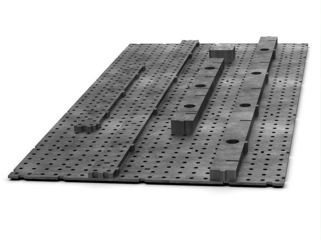Сварочно-сборочный стол от Keepler-Stan предназначен для позиционирования и фиксации деталей и узлов металлических конструкций, а также для позиционирования роботизированной сварки. Усиленная ребрами жесткости столешница имеет отверстия диаметром 16мм и координатную сетку с шагом 50 мм для использования ее в качестве шаблона а так же нанесена линейка по длинной стороне стола для удобства позиционирования деталей. Толщина и высота ребер жесткости соответствует толщине столешницы и заявленной высоте боковой стенки. Внимание! Плоскостность всей столешницы после лазерной резки от от 3 до 5 мм на пог. м. Пожалуйста, при сборке самостоятельно, с помощью струбцин, вытягивайте столешницу до достижения плоскостности 1 мм на погонный метр. Механические свойства стали 09Г2С на 30% лучше, чем стали Ст3, которую используют другие производители.