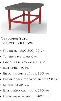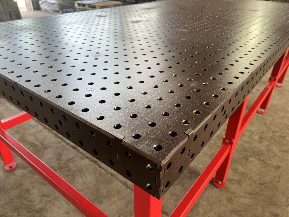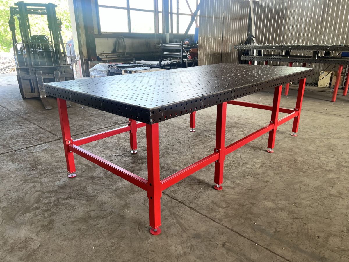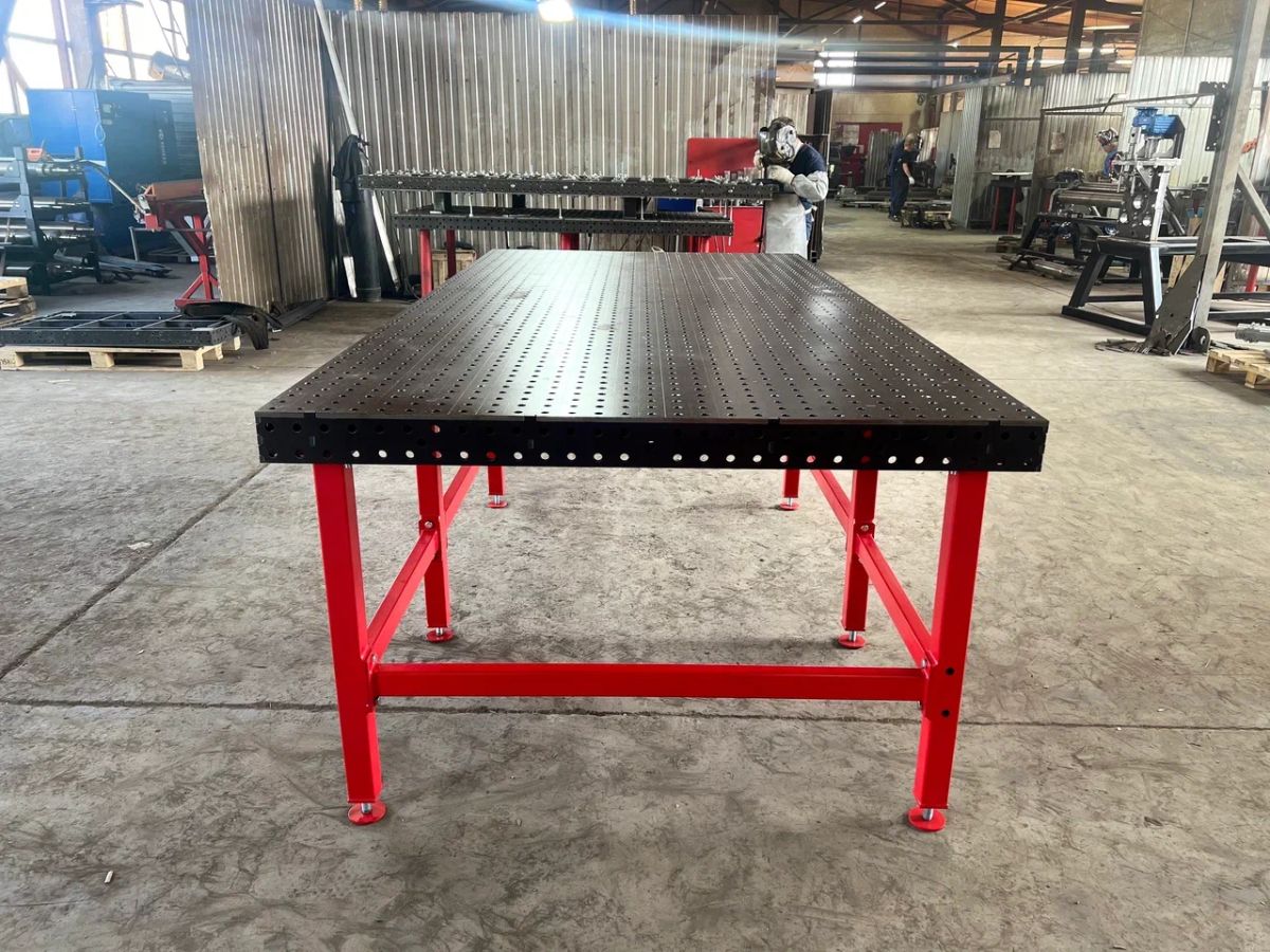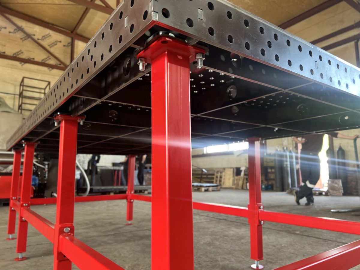 Сварочно-сборочный стол от Keepler-Stan предназначен для позиционирования и фиксации деталей и узлов металлических конструкций, а также для позиционирования роботизированной сварки. Усиленная ребрами жесткости столешница имеет отверстия диаметром 16мм и координатную сетку с шагом 50 мм для использования ее в качестве шаблона а так же нанесена линейка по длинной стороне стола для удобства позиционирования деталей. Толщина и высота ребер жесткости соответствует толщине столешницы и заявленной высоте боковой стенки. Допустимое отклонение по плоскости столешницы 1мм на 1 пог.м. стола. Высота стола 900мм, с возможностью регулировки 50 мм.