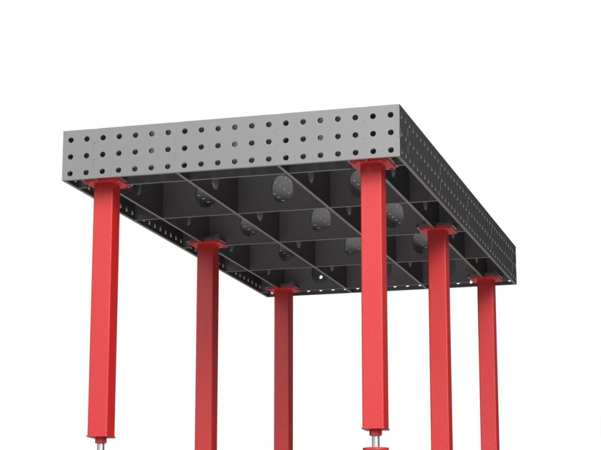 Сварочно-сборочный стол от Keepler-Stan предназначен для позиционирования и фиксации деталей и узлов металлических конструкций, а также для позиционирования роботизированной сварки. Усиленная ребрами жесткости столешница имеет отверстия диаметром 16мм и координатную сетку с шагом 50 мм для использования ее в качестве шаблона а так же нанесена линейка по длинной стороне стола для удобства позиционирования деталей. Толщина и высота ребер жесткости соответствует толщине столешницы и заявленной высоте боковой стенки. Допустимое отклонение по плоскости столешницы 1мм на 1 пог.м. стола. Высота стола 900мм, с возможностью регулировки 50 мм.