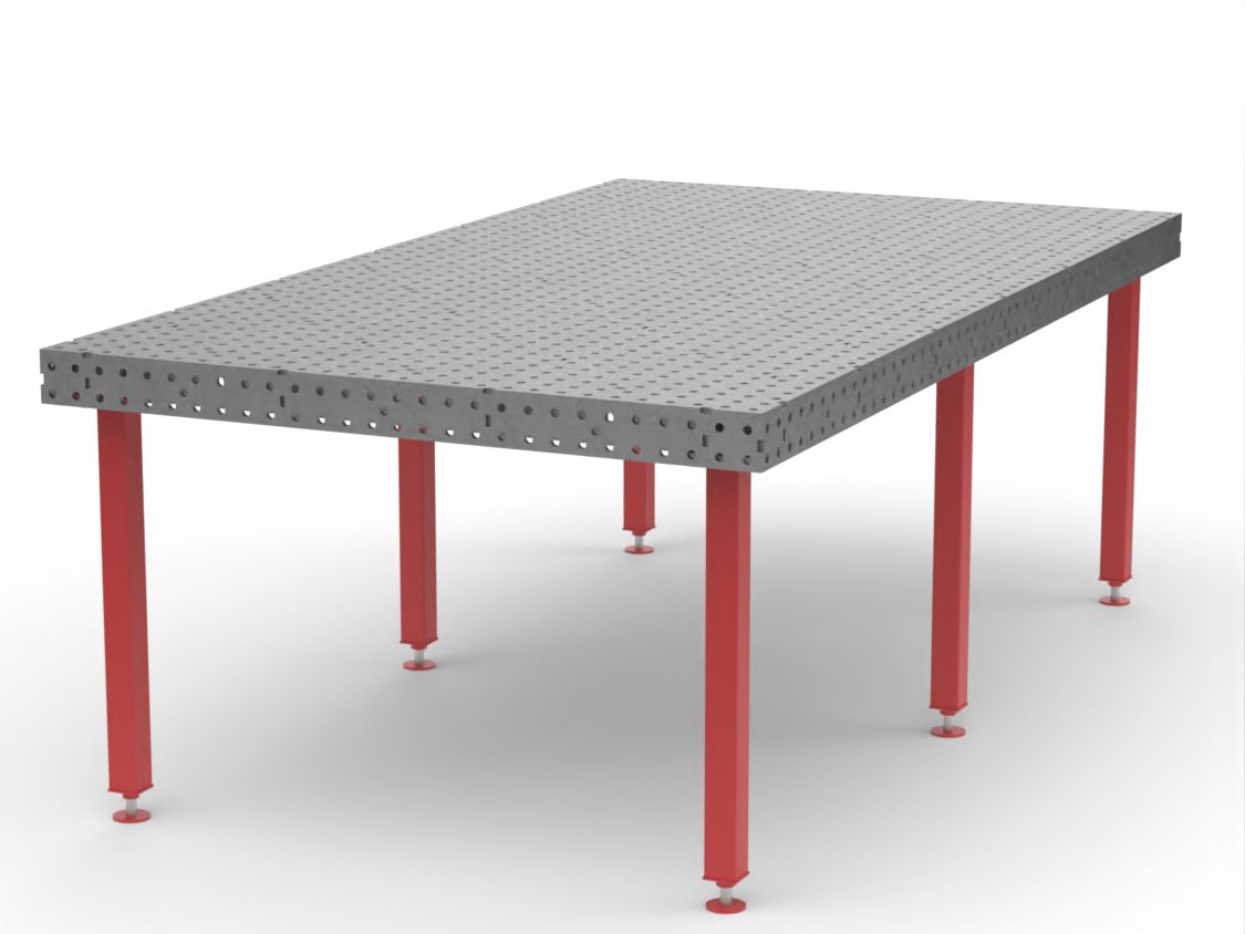 Сварочно-сборочный стол от Keepler-Stan предназначен для позиционирования и фиксации деталей и узлов металлических конструкций, а также для позиционирования роботизированной сварки. Усиленная ребрами жесткости столешница имеет отверстия диаметром 16мм и координатную сетку с шагом 50 мм для использования ее в качестве шаблона а так же нанесена линейка по длинной стороне стола для удобства позиционирования деталей. Толщина и высота ребер жесткости соответствует толщине столешницы и заявленной высоте боковой стенки. Допустимое отклонение по плоскости столешницы 1мм на 1 пог.м. стола. Высота стола 900мм, с возможностью регулировки 50 мм.
